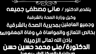 جميعة ينعي وفاة الصيدلانية منى محمد حسين بالمركز الطبي بههيا