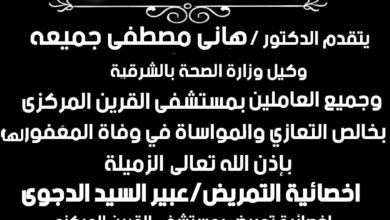 جميعة ينعي وفاة أخصائية التمريض عبير السيد بمستشفى القرين المركزي
