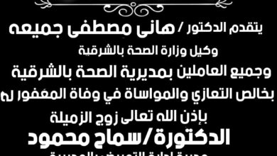 جميعة ينعي وفاة زوج مديرة إدارة التمريض بالمديرية