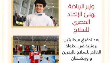 وزير الرياضة يهنئ الإتحاد المصري للسلاح بعد تحقيق ميداليتين برونزية في بطولة العالم للسلاح بالبحرين واوزبكستان