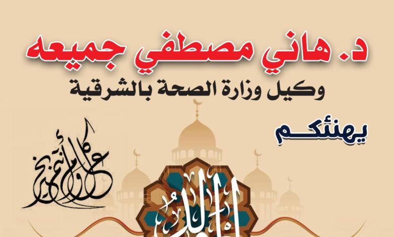 يتقدم السيد الدكتور هاني مصطفى جميعة وكيل وزارة الصحة بالشرقية بخالص التهنئة لفخامة الرئيس عبد الفتاح السيسي رئيس الجمهورية، ومعالي الأستاذ الدكتور خالد عبدالغفار نائب رئيس مجلس الوزراء ووزير الصحة والسكان، ومعالي المهندس حازم الأشموني محافظ الشرقية، وجميع العاملين بالقطاع الصحي والمواطنين بمحافظة الشرقية، بمناسبة حلول ذكرى المولد النبوي الشريف، داعياً المولى عز وجل أن يعيد هذه المناسبة الدينية العطرة بالخير واليمن والبركات علي مصرنا الغالية وشعبها العريق، وعلي الأمة العربية والإسلامية، وأن يجعل ذكرى مولد الرسول الكريم رسالة للخير والآمان والاستقرار والسلام، وأن يحفظ مصر وشعبها العظيم من كل مكروه وسوء، وكل عام وأنتم بخير.
