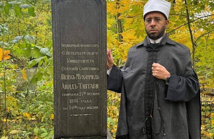 زار الأستاذ الدكتور أسامة الأزهري وزير الأوقاف ضريح العالم الأزهري الجليل الشيخ محمد عياد الطنطاوي (رحمه الله) في سانت بطرسبرج بروسيا عقب مشاركته بفعاليات القمة الدينية العالمية الأولى في سانت بطرسبرج بعنوان: “دور القيم الروحية والأخلاقية في الأديان التقليدية .. وسبل تعزيز قيم الحوار بين الطوائف والأعراق في العالم المعاصر” والتي تنظمها الإدارة الدينية لمسلمي سانت بطرسبرغ والمنطقة الشمالية الغربية من روسيا، والإدارة الدينية لمسلمي القسم الأسيوي من روسيا، وقسم العلاقات الخارجية للكنيسة البطريركية في موسكو، وجامعة سانت بطرسبرغ الحكومية، وصندوق دعم الثقافة الإسلامية والعلم والتعليم.