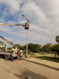 وتتضمن خطة العمل استبدال كشافات الصوديوم التقليدية بكشافات ليد موفرة للطاقة إلى جانب صيانة ولاعات الإنارة وتأمين الكابلات والأعمدة وتنفيذ أعمال دهانات وصيانة للهياكل المعدنية للحفاظ على المظهر الحضاري للمدينة