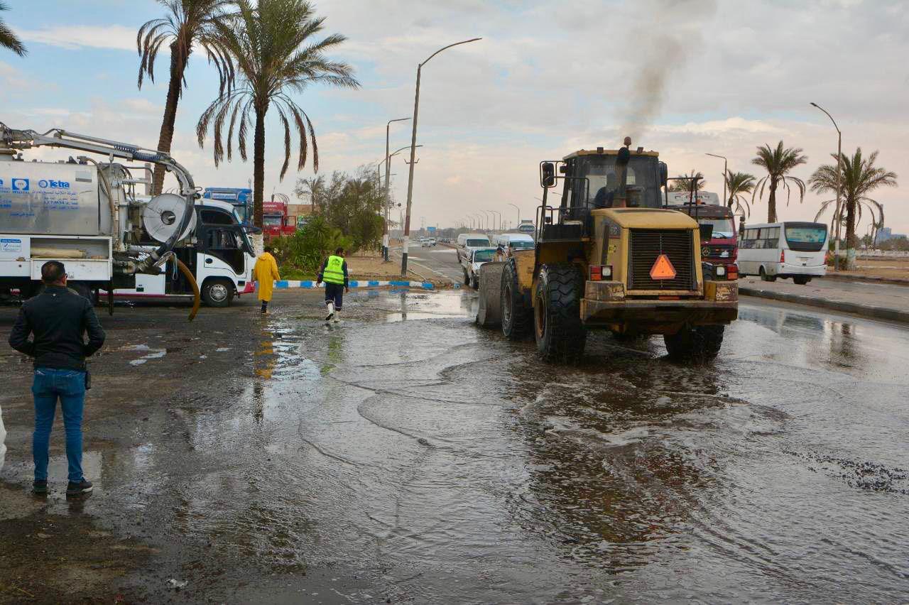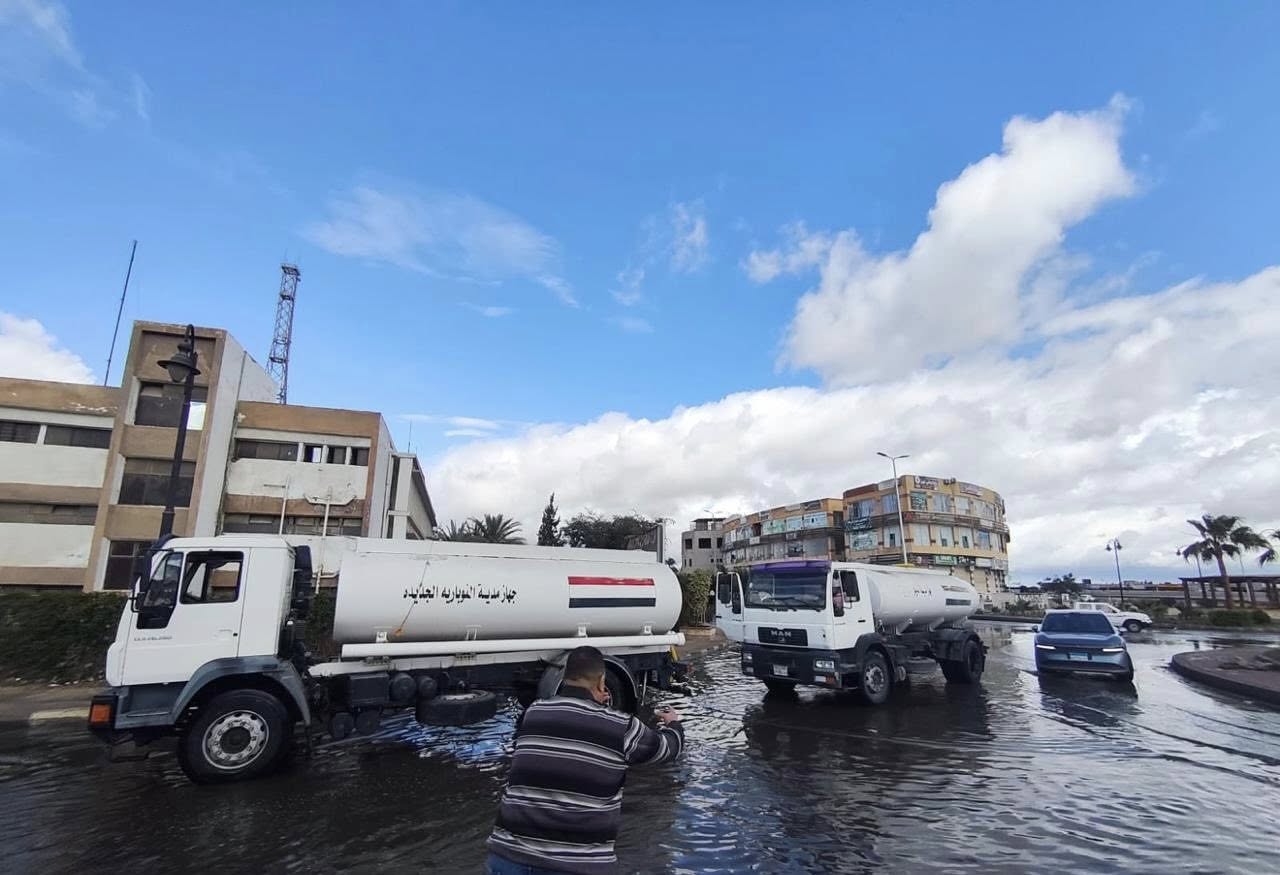 وفي مدينة المنيا الجديدة، تم التحرك الفوري للتعامل مع تجمعات مياه الأمطار بمختلف شوارع وميادين المدينة، مع العمل على سحب المياه أولًا بأول، لضمان تحقيق السيولة المرورية وتيسير حركة المواطنين، خاصة في المناطق الحيوية والطرق الرئيسية، إلى جانب الاستجابة العاجلة لشكاوى وبلاغات السكان، ولا سيما بالمناطق المنخفضة.