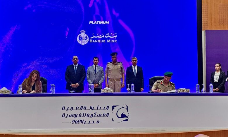 تحت رعاية فخامة السيد الرئيس عبد الفتاح السيسي – رئيس جمهورية مصر العربية تم افتتاح البطولة العربية العسكرية الاولى للفروسية ، وتم عقد المؤتمر الصحفي الخاص بالبطولة يوم الاثنين الموافق 22 ابريل2024 ، بنادي الفروسية بمدينة مصر الدولية للألعاب الأوليمبية بالعاصمة الإدارية الجديدة، بحضور معالي الأستاذ الدكتور/ أشرف صبحي – وزير الشباب والرياضة، و السيد اللواء / إيهاب لطفي – مدير إدارة المدرعات وذلك للإعلان عن انطلاق البطولة العربية العسكرية الاولى للفروسية برعاية بنك مصرو ذلك في إطار حرص بنك مصر على دعم الرياضة المصرية، و قد شارك في الاحتفالية لفيف متميز من قيادات وزارة الشباب والرياضة، و ممثلي بنك مصر في مقدمتهم الدكتورة فاطمة الجولى -رئيس قطاع اتصالات المؤسسة ببنك مصر، و ممثلي الجهات الاخرى المشاركة في الرعاية و ممثلي البلاد العربية المشاركة في البطولة .