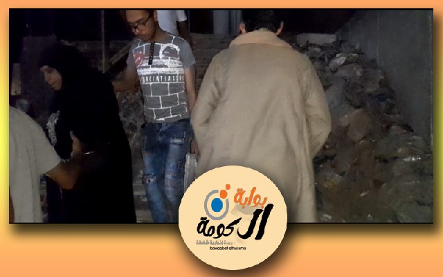 وأيضا، الإضاءة التي تكاد تكون معتمة، ولا يرى أحد درجات السلالم أثناء النزول، ومدى الخطورة من هذه السلالم، التي تؤدى إلى خطر الموت، والسقوط من أعلى، وأيضا تراكم القمامة، على جانب السلم.