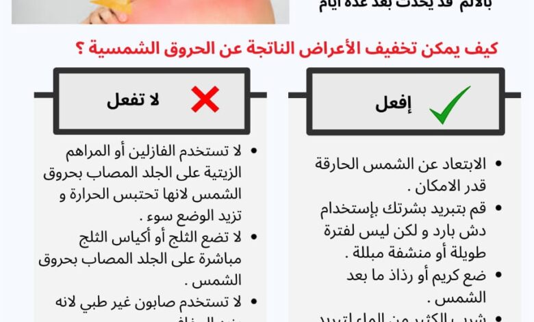 كيف يمكن تخفيف الأعراض الناتجة عن الحروق الشمسية ؟