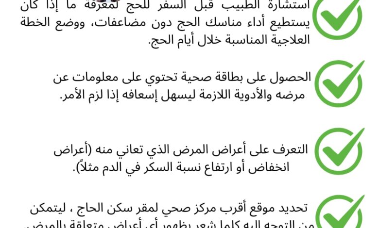 في حال كان الحاج يعاني من مرض مزمن السكري، الربو، أمراض القلب وغيرها) عليه الالتزام بالنصائح التالية: