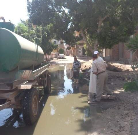 وتنفيذاً لتوجيهات المحافظ ، قام رئيس المركز بالتنسيق مع شركة مياة الشرب والصرف الصحى بكسح مياه الصرف الصحي المتراكمة بالمدخل الرئيسى للبلد بجوار المدرسة الإعدادية ومجمع المصالح بإستخدام النافوري وسيارات كسح المياه والتي جاءت نتيجة الإستخدام الخاطئ من الأهالي لشبكات الصرف الصحي الأهلية بمنازلهم..