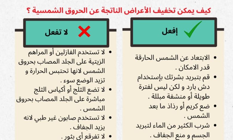 كيف يمكن تخفيف الأعراض الناتجة عن الحروق الشمسية ؟