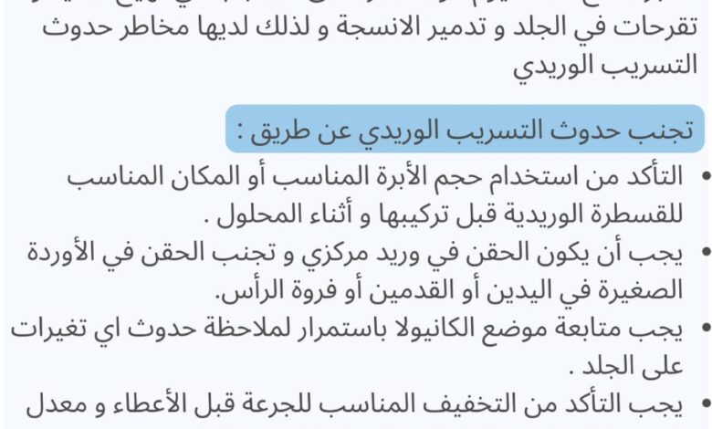 الاجراءات اللازمة عند حدوث التسريب الوريدي