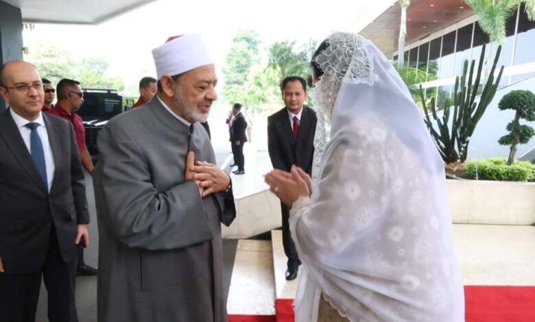 من جهته، أعرب شيخ الأزهر رئيس مجلس حكماء المسلمين عن سعادته بزيارة البرلمان الأندونيسي، مشيرًا إلى متانة العلاقات المصرية الإندونيسية، حيث كانت مصر أولى الدول التي دعمت واعترفت باستقلال إندونيسيا عام ١٩٤٦، موضحًا أن الأزهر كان أحد أهم عوامل تقوية العلاقات المصرية الإندونيسية، وامتدادها إلى أن أصبح لدينا أكثر من ١٤ ألف طالب إندونيسي، يدرسون في المعاهد والجامعة الأزهريّة، كما يقدم الأزهر ٢٠٠ منحة دراسية، وقد قررنا زيادة أعداد المنح خلال هذه الزيارة تقديرًا للشعب الأندونيسي.